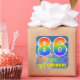 Este design de adesivo, divertido e empolgante, com o tema de aniversário, apresenta um céu azul com um fundo de nuvens, um grande número "86" e "FELIZ BIRTHDAY", ambos tendo um espectro multicolorido de arco-íris inspirado em gradiente e um nome personalizado. Tímulos coloridos e felizes como este podem ser usados ao embrulhar presentes que são dados em comemoração do 86º aniversário de alguém. [~Z0000374]