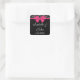 Este adesivo preto e branco apresenta um elegante padrão de rosa preto e branco, um arco rosa quente e um texto branco sobre fundo preto.