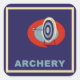 Desenho de um arco e de um alvo de seta com setas sobre ele afixadas