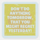 Uma design de tipografia engraçada sobre arrependimentos, isso confunde tensão passada e presente e não faz sentido. Até qualquer coisa amanhã que você possa se arrepender ontem.