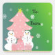 Uma bela cena de inverno com dois pequenos bonecos de neve em frente a uma árvore de Natal rosa com bonito pacotes cor-de-rosa. Um fundo verde sombreado com pequenos flocos de neve caindo. Personalizar conforme desejado.