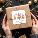 Lindas árvores de Natal de aquarela com sotaque de estrela dourada com estes grandes adesivos quadrados com Feliz Natal, Feliz ano novo e seu nome em letra chic. CORRESPONDENTE a itens na nossa coleção.