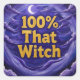 Este adesivo apresenta um impressão de óleo branco pintado de uma paisagem nublada de fantasia com as palavras 100% Aquela Bruxa.