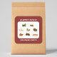 Contém Loucos Sticker: para aconselhamento sobre alergia na embalagem dos produtos de comida. Vem com um fundo vermelho e ilustrações de avelã, noz, castanha, amendoim, caju, macadâmia, pistachio, amêndoa, do que você pode mudar!