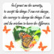 Delícia nesta linda borboleta Serenity Prayer design. Espalhe o amor, a paz e as bençãos de Deus com esta encorajadora foto da borboleta Serenity Prayer em Camisetas, Joias, Artes de Parede, Mugs, Decoração Doméstica e presentes encorajadores. Deus me conceda serenidade para aceitar as coisas que não posso mudar, a coragem para mudar as coisas que posso, e a sabedoria para saber a diferença. Esta prece serenidade ilustre parecerá encantadora em uma Tee ou decorará sua casa com um dos nossos charmosos produtos de decoração caseira. Isso fará um presente apreciado para aniversários, feriados ou qualquer ocasião.