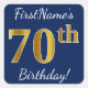 Adesivo Quadrado Azul, Faux Dourado 70 Aniversário + Nome Personali