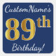 Adesivo Quadrado Azul, Faux Dourado 89.º Aniversário + Nome Persona