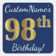 Adesivo Quadrado Azul, Faux Dourado 98.º Aniversário + Nome Persona