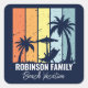 Adesivo Quadrado Azul Marinho Personalizado de Férias Retro Praia l