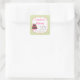 Este adesivo apresenta um fundo de padrão de bolinhas verde e um centro totalmente personalizável. Este adesivo é um design genérico de excelente.
