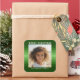 Padrão de faixa verde retroativo com uma simples saudação e assinatura familiar. Adicione seu instantâneo de selfie ou família favorito. Use uma foto quadrada para criar este cartões de natal exclusivo e pessoal. Um padrão de faixa retrô em tons de verde está no fundo.