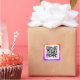 Personalize este adesivo com seu Código QR (em qualquer cor) e Nome comercial, site e código de número em branco com borda geométrica laranja e roxa.