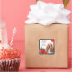 Neste adesivo, uma bela imagem de aquarela de uma Caça Basset é emoldurada com buquês de poinsettia vermelha de cor aquática de Natal. Uma borda externa de verde azul correspondente rodeia o branco interior, e mais imagens de poinsettia estão no canto superior direito. O texto vermelho e lacrimogêneo diz "FELIZ ANO NOVO NATAL MERRY". Engraçado para sua correspondência de Feriado ou pacotes de presentes.