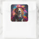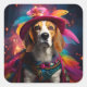 Adesivo Quadrado Beagle em um chapéu de penas