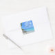 Wedding stickers with a scenic tropical photograph. A secluded beach with white sand and turquoise water.