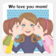 Filho e filha beijando bochechas de mãe felizes de ambos os lados Celebram o Dia de as mães com este design bonito e original do Kakigori Studio.