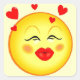 Um design de "Rosto Feliz" com grandes lábios vermelhos soprando beijos em forma de coração para um e todos.