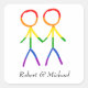 Este adesivo quadrado apresenta um design bonito e elegante para trazer um toque coeso e significativo para o seu casamento. O gráfico representa dois homens, na forma de figuras elegantes de palitos, de mãos dadas. Os números são coloridos num belo arco-íris, simbolizando amor e diversidade. Este adesivo é uma maneira maravilhosa de celebrar sua história de amor com cada detalhe do seu dia especial.
