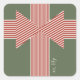 A festive sticker to add to gifts, gift bags, favors or card envelopes featuring a bold and modern large geometrical bow with a customizable name or message in christmas colors.