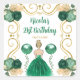 This birthday sticker features an elegant gold frame, a beautiful princess with blonde hair and a green dress, flowers and a balloon. This is perfect for a birthday party.