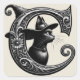 Adesivo Quadrado Black Cat Witchy - Letra C Personalizada Inicial