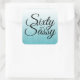 Celebrar com 60 anos em estilo com este moderno design de 60 anos num fundo azul turquesa ombre, estes adesivos quadrados de 60 anos chic são perfeitos para criar uma fabulosa celebração de 60 anos. As palavras sessenta e sassy são definidas usando a escrita moderna. Se precisar de ajuda ou produtos correspondentes, entre em contato conosco através da nossa loja. Estamos felizes em ajudá-lo a fazer da sua 60ª festa de aniversário um evento fabuloso!