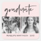 Um adesivo moderno e chic com tipografia de formando preto, duas fotos, nome e ano de classe em texto preto em um fundo cor-de-rosa-claro.
