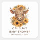 Adesivo Quadrado Bohemian Highland Cow Sunflowers Baby Shower