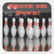 Uma folha de autocolantes com um rack de pinos de boliche e as palavras Bata-me. Pode ser personalizado.