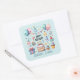 Adesivo Quadrado Bolo de aniversário feliz e bonito, adicione nome