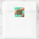 Adesivo Quadrado Bolo de Chocolate Castanho e Teal