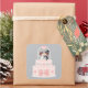 Etiquetas decorativas personalizadas que vêm com uma ilustração de um bolo de casamento com fita e corações. Os topos do bolo incluem uma noiva de vestido branco e noivo de chapéu preto e terno sob um sinos de casamento, um arco floral. Personalize com os nomes do casal de casamento e a data do casamento!