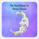 Esta etiqueta adesiva quadrada tem uma bonito lua de fantasia branca com decorações brilhantemente coloridas de azul, amarelo e roxo e uma face com três estrelas douradas sobre fundo do céu roxo. Personalize seu texto com os modelos.