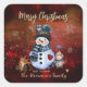 Adesivo Quadrado Bonito Snowman, uma Criança e pássaros, Red Square