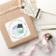 Devolva adesivos de endereço com uma imagem química de um unicórnio e de um pássaro. Este par está sorrindo alegremente enquanto está saindo juntos. Um pequeno coração paira sobre a cabeça. Unicórnio é branco com asas de anjo e um chifre cor-de-rosa. O pássaro é uma cor azul esverdeada vestindo um toque preto com gato preto com ouvidos. Uma nuvem azul colocada atrás desses melhores amigos felizes.