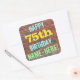 Este design de autocolante de aniversários divertido apresenta uma mensagem como "FELIZ 75º ANIVERSÁRIO, NOME AQUI!", onde o nome pode ser personalizado. O fundo apresenta uma representação de uma parede de tijolos constituída por alguns tijolos de cor castanha avermelhada. O texto de mensagem personalizável apresenta cores como azul, amarelo e verde, e tem uma aparência inspirada pela do grafite pintado. Os adesivos como estes poderiam talvez ser dados como presente de aniversário, ou talvez usados como decorações em uma festa de aniversário para alguém que comemora seus setenta e cinco anos. [~Z0000273]