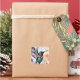 A brushstroke-style design featuring a vibrant hummingbird adorned with a spotted bow tie, its wings fluttering as it hovers gracefully above a nest fille