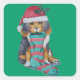 Adesivo Quadrado cachorrinho preto e marrom, com estocagem de natal