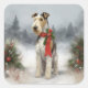 Adesivo Quadrado Cachorro Terrier Wirefox no Natal da Neve