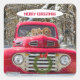 Adesivo Quadrado Cães de Natal felizes no caminhão vermelho retrô