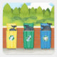 Uma fila de caixas reciclagens coloridas. Esta design parece realmente eficaz nestes adesivos