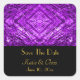 Salve o adesivo de data - personalize com seus próprios detalhes. Belo design de caleidoscópio de cor púrpura com gravuras em forma de diamante em violeta escura. Luz e sombras criam um olhar interessante para este padrão simétrico surreal de vidro brilhante manchado.