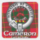 Cameron Clan Tartan, Crest Crachá e Motto sobre uma grande variedade de produtos. O cinto e a fivela indicam que o utente é membro do clã simbolizado pela crista e lema do chefe dentro do cinto. O cinturão que circunda a crista toma o lugar da frase gaélica "um cireão ceann cinneadh" (crista do chefe do clã). É geralmente aceito que Clã Tartans data do início do século XIX. O Clã Cameron Crest "Um pano de cinco setas, propriamente dito, amarrado com uma banda, gulos, rodeados por um cinto e fivela." O lema Clã Cameron é escolhido pelo Chefe Clã. Aonaibh Ri Cheile, Vamos nos unir. Cameron Clan Septs: Câmaras, Chalmers, Clark, Clarke, Clarkson, Cleary, Clerk, Dowie, Gibbon, Grimesey, Kennedy, Krywonis, Leary, Lokcick, Lonbie, Lonie, MacAldowie, MacChlerich, MacChlery, MacClair, MacClerie, MacClerie, MacElhaney, MacGillery, MacGillonie, MacIldowie, MacKail, MacKell, MacLear, MacLeary, MacLerie, MacMartin, MacOnie, MacOstrich, MacOurlic, MacSorley, MacUlric, MacUlrig Mac, MacVail, Walrick, Martin, Paul, Sorley, Sorlie, Taylor