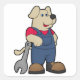 Adesivo Quadrado Cão como mecânico com chave inglesa