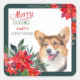 Adesivo Quadrado Cardigan Welsh Corgi Poinsettia Buquê Natal