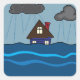 Uma casa inundada com nuvens escuras e chuva. Esta design parece realmente eficaz nestes adesivos
