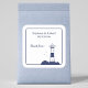 Um adesivo elegante e simples com uma ilustração de um farol em tons azuis marinhos para um casamento sobre temas marítimos e náuticos!