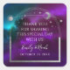 Solo Roxo Cósmico Prateado Sol Lua Astronomia Favor Casamento Os Stickers apresentam sol prateado, lua e estrelas com uma armação prateada sobre um roxo místico colorido, cor de rosa e fundo cósmico azul. Personalizado com uma mensagem "Obrigado". Perfeito para casamento e favoritos para festas. Personalize editando o texto nas caixas de texto fornecidas. Projetado para você por © Evco Studio www.zazzle.com/store/evcostudio
