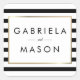 Um adesivo quadrado de folha de ouro falso em stripe clássico com um fundo clássico de faixa branca e preta. Estes elegantes adesivos de casamento apresentam uma elegante borda de folha de ouro falso que enquadra seus nomes em tipografia quic. Projetado por Thisnotme©