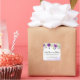 Belo envelope ou selo de favor de casamento. Rosas roxas ultra violetas e flores brancas de marfim cremoso estão aninhadas em verde-claro e em botões roxos para criar uma fronteira superior muito bonito. Uma lavagem de aquarela suave e sem som define a parte inferior do adesivo. Com amor e Obrigados é escrito em um rico e um roteiro formal. Seu nome e data de casamento estão abaixo em uma fonte clássica de serifa. Um sentimento pessoal está em itálico abaixo. Todo o texto pode ser personalizado.